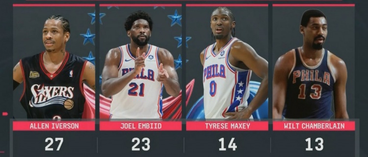 馬克西連續(xù)14場得25+ 超越張伯倫上升至76人隊史第三&僅次AI大帝 2025/02/03
