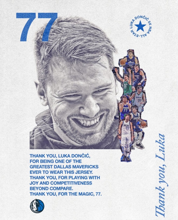 獨行俠官方致謝東契奇:你是隊史最偉大的球員之一 感謝盧卡魔法 2月3日訊 NBA歷史級別的重磅三方交易官宣完成,東契奇加盟湖人,濃眉赴獨行俠,爵士出11萬美元得到兩個次輪和17號秀席菲諾。獨行俠官方制作海報致謝東契奇,官方列出了東契奇的生涯榮譽,詳情如下:年度最 2025/02/03