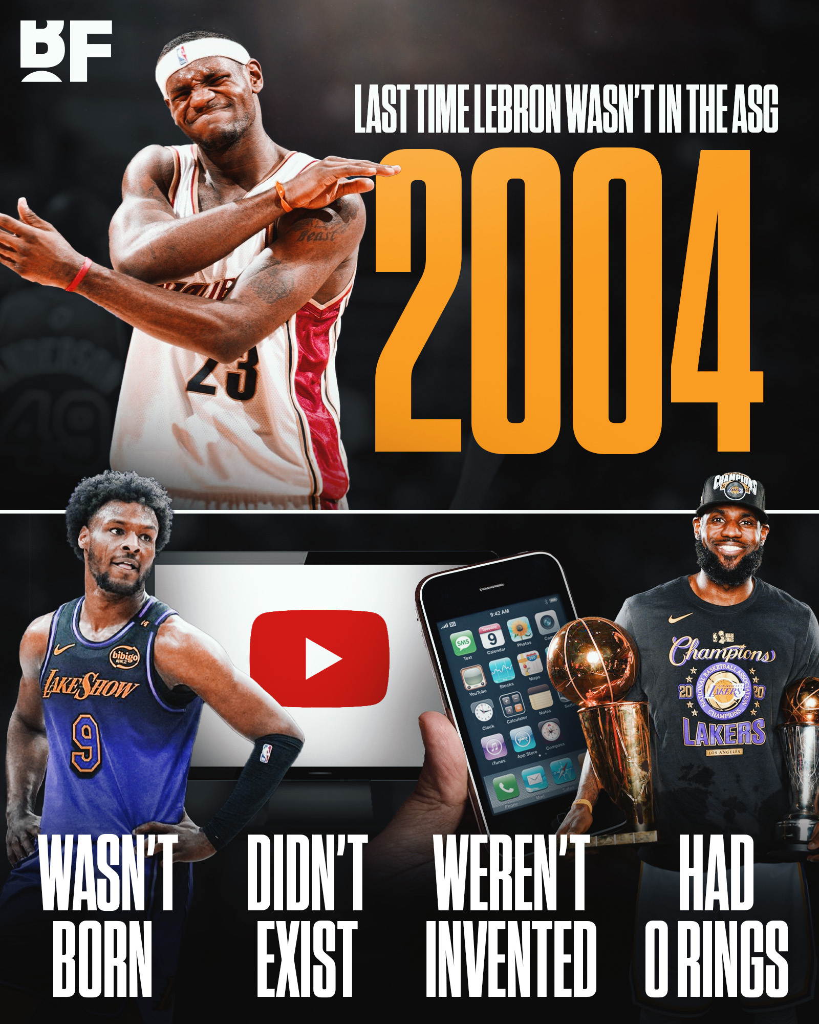 詹姆斯上次未出現(xiàn)在全明星賽時(shí)還是2004年當(dāng)時(shí)布朗尼還未出生油管還不存在IPhone還未現(xiàn)世詹姆斯還沒(méi)有奪冠 標(biāo)簽: 籃球 NBA 湖人 詹姆斯 布朗尼