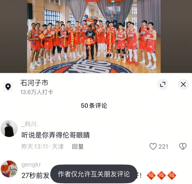 評(píng)論區(qū)另一個(gè)熱評(píng)則是小將袁照耀,目前已經(jīng)很多點(diǎn)贊,但郭艾倫沒(méi)有回復(fù)。值得一提的是,袁的社媒開(kāi)啟了防打擾,但郭艾倫最新的抖音發(fā)布之后又開(kāi)啟了。