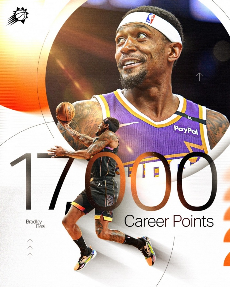 比爾已經(jīng)得到了4分,這樣他的生涯總得分正式越過了17000分大關(guān)(本場比賽前16997分)。