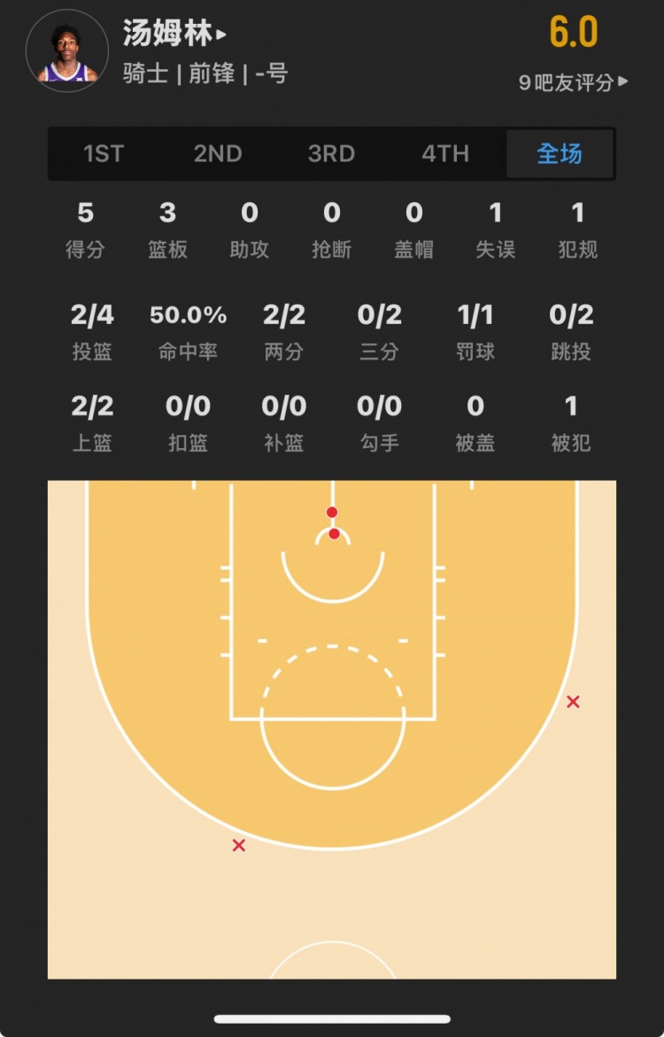 騎士落選秀 奈考恩-湯姆林 登場7.5分鐘