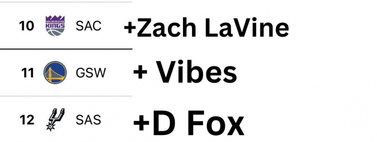 在曬出的圖片中,排西部第10的國王得到拉文,第12的馬刺得到??怂梗?1的勇士則只得到了空氣(意指精神勝利法)。