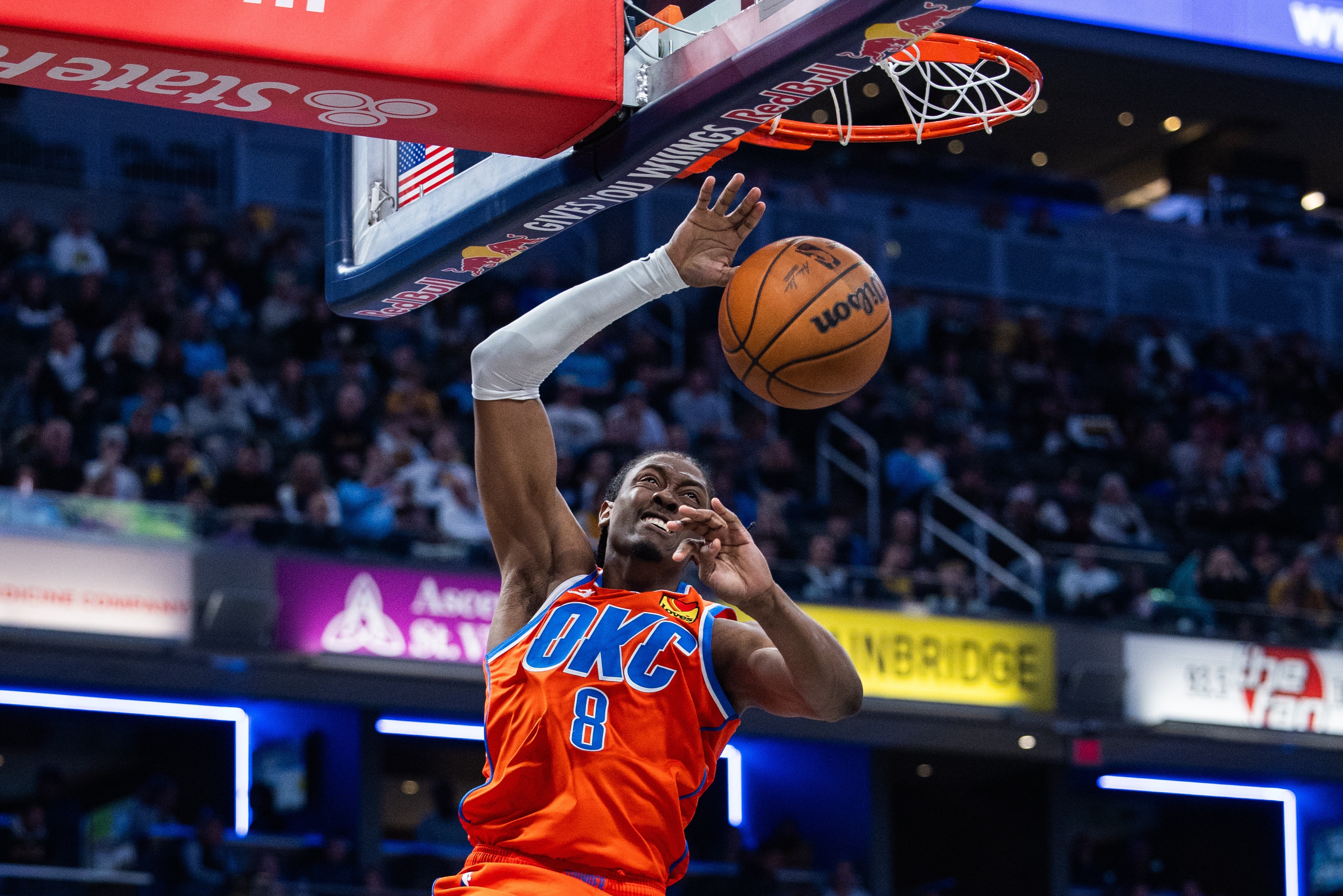 此役雷霆球員杰倫-威廉姆斯出場42分鐘23投10中,三分8中2、罰球6中5拿到27分6籃板6助攻1搶斷1蓋帽,正負(fù)值-5。