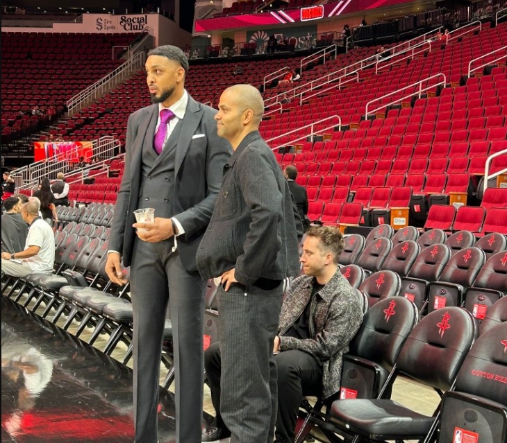 值得一提的是,馬刺名宿托尼-帕克今天來到了現(xiàn)場(chǎng),為馬刺助威。