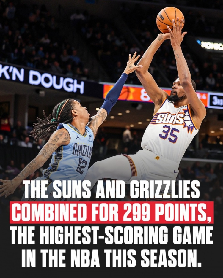 昨日太陽(yáng)148-151惜敗灰熊 兩隊(duì)砍299分創(chuàng)本賽季單場(chǎng)得分紀(jì)錄