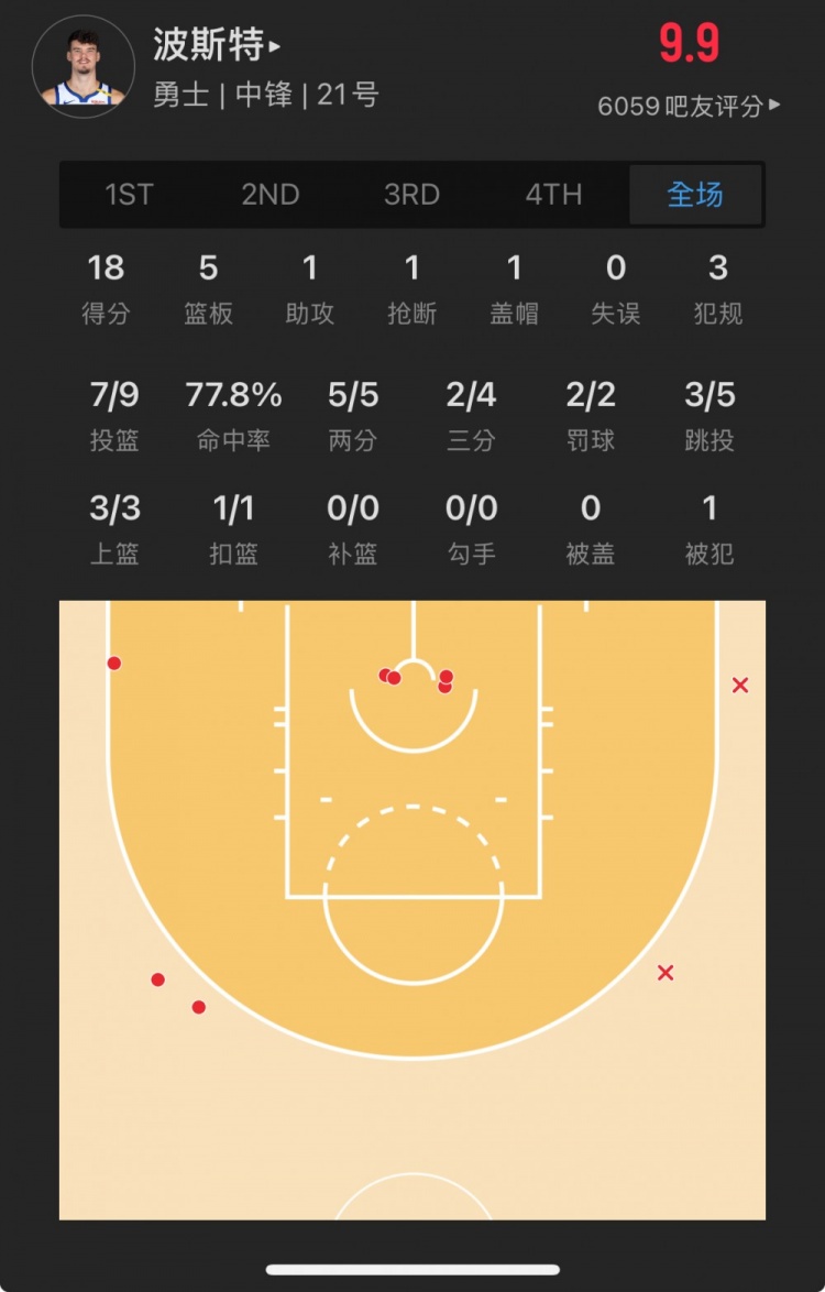 勇士52號秀 昆滕-波斯特 登場24.1分鐘