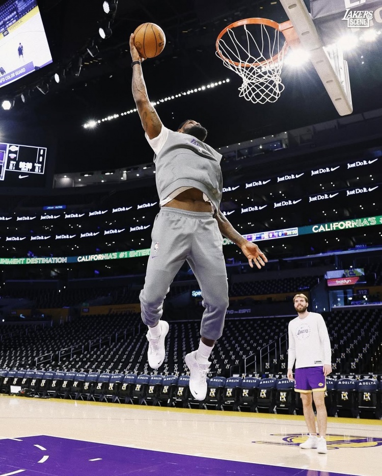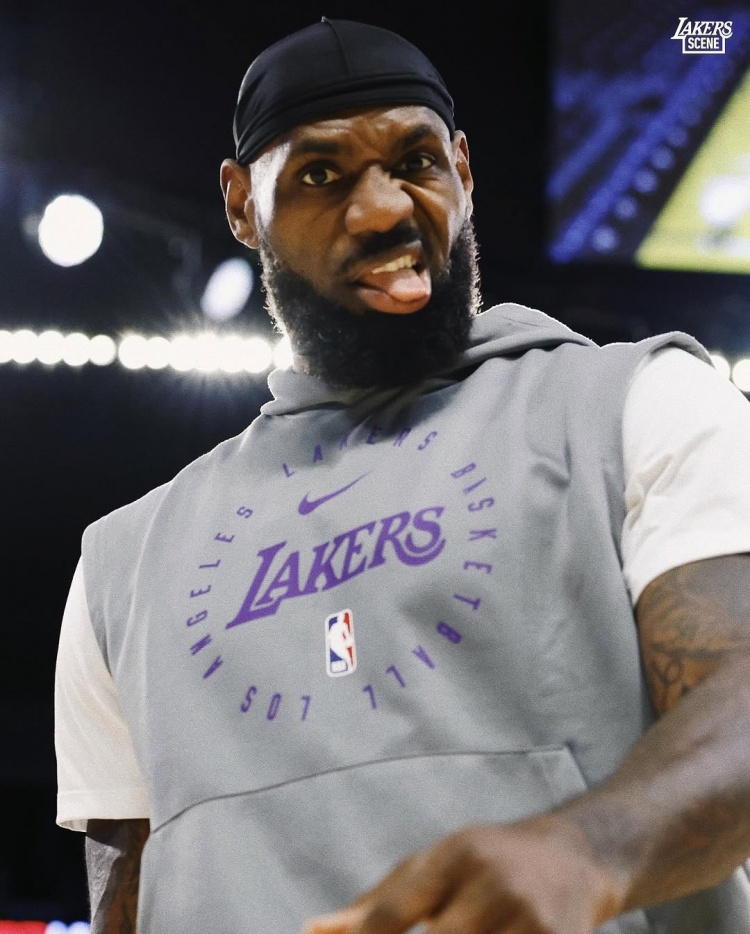3月5日訊 今日,湖人官方媒體Instagram賬號Lakers Scene發(fā)布了一組前鋒勒布朗-詹姆斯的賽前熱身照。