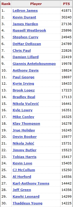 各位吧友們認為,誰將成為現(xiàn)役第10位20000分先生?現(xiàn)役得分Top30里,誰還有望達成該成就?
