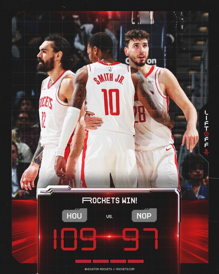 火箭官方曬贏球海報(bào):申京、亞當(dāng)斯、小賈巴里一起登上封面