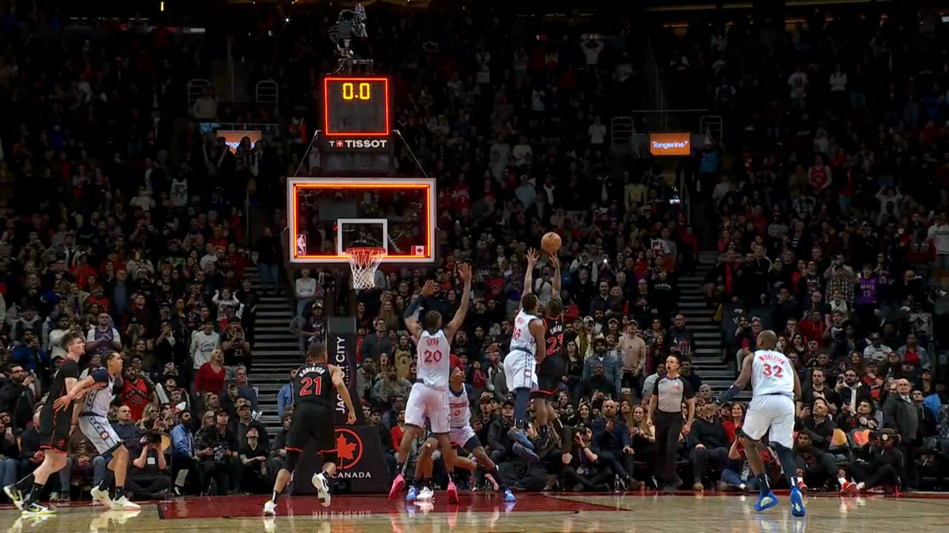 比賽最后2.3秒,賈馬爾-謝德絕殺上籃打板命中,猛龍球員和主場(chǎng)觀眾瘋狂慶祝,甚至已經(jīng)有人帶著勝利的喜悅退場(chǎng)。但裁判查看回放后,確認(rèn)進(jìn)球超時(shí),奇才死里逃生贏下比賽。