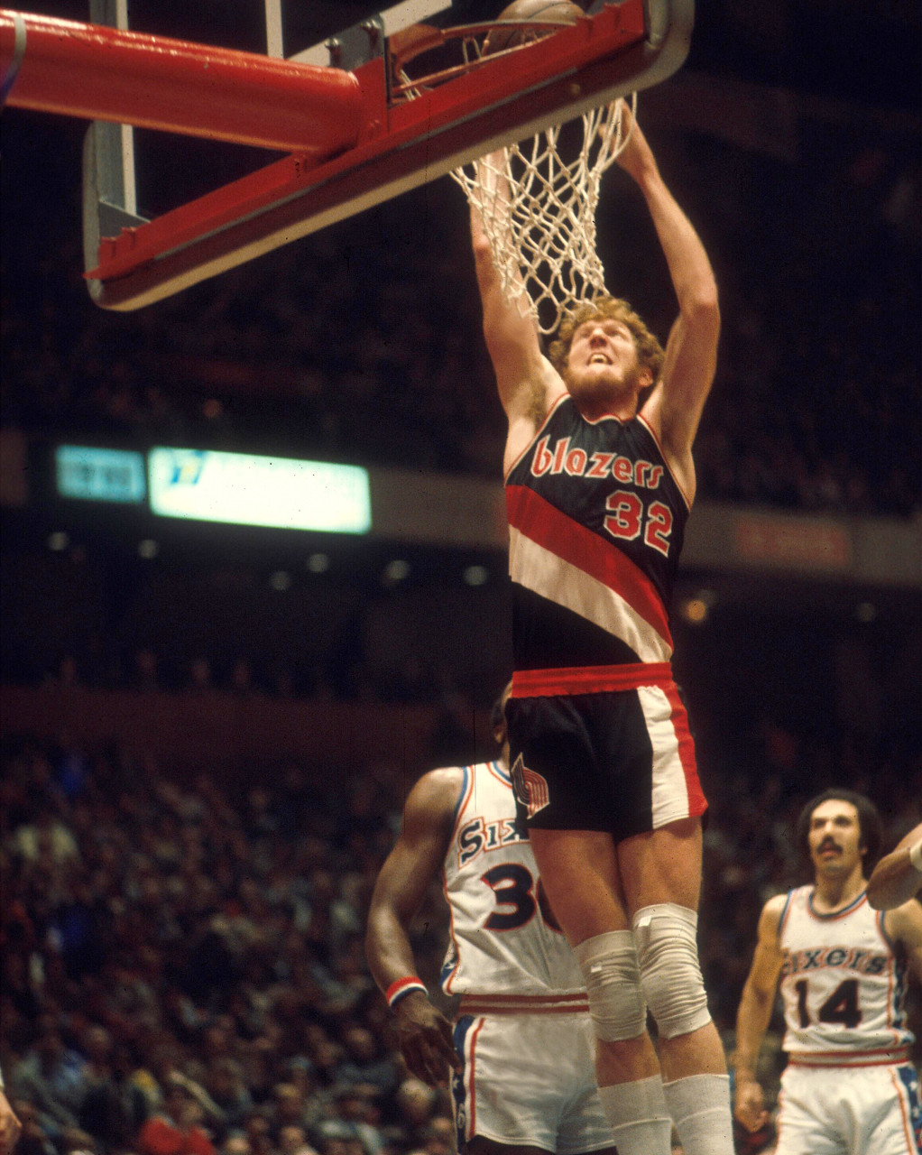 至少在比爾-沃頓的雙腳傷病徹底毀了他的職業(yè)生涯之前,開(kāi)拓者在1977年憑借他的出色表現(xiàn)奪得了總冠軍。從某種意義上說(shuō),有人可能會(huì)認(rèn)為,沃頓帶領(lǐng)開(kāi)拓者戰(zhàn)勝“J博士”歐文率領(lǐng)的76人這一事實(shí),讓他比恩比德更“出色”。但這并不能改變另一個(gè)事實(shí),那就是沃頓因?yàn)閭∪毕苏膫€(gè)賽季,在他出戰(zhàn)的10個(gè)賽季中,有9個(gè)賽季出戰(zhàn)場(chǎng)次不超過(guò)67場(chǎng)。