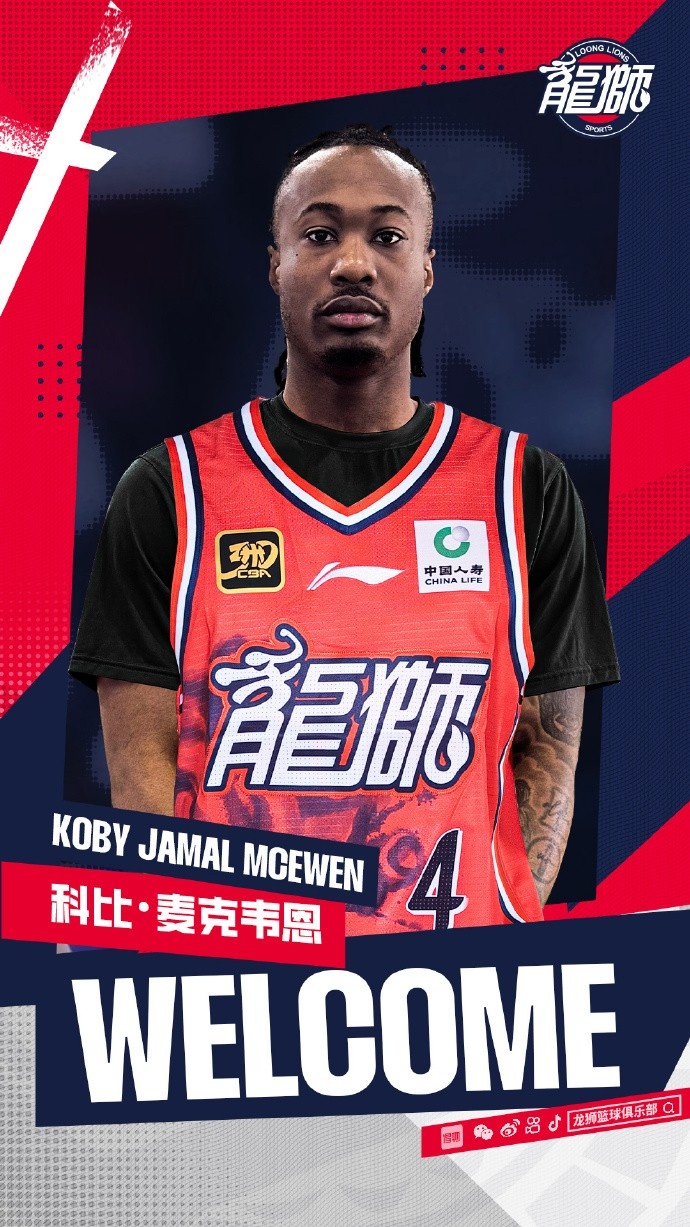龍獅籃球俱樂部宣布:俱樂部與加拿大籍球員科比·麥克韋恩(Koby Mcewen) 正式簽約,待CBA公司審核、公示通過后,麥克韋恩將身披廣州朗肽海本隊4號戰(zhàn)袍開啟自己的CBA生涯!Welcome!