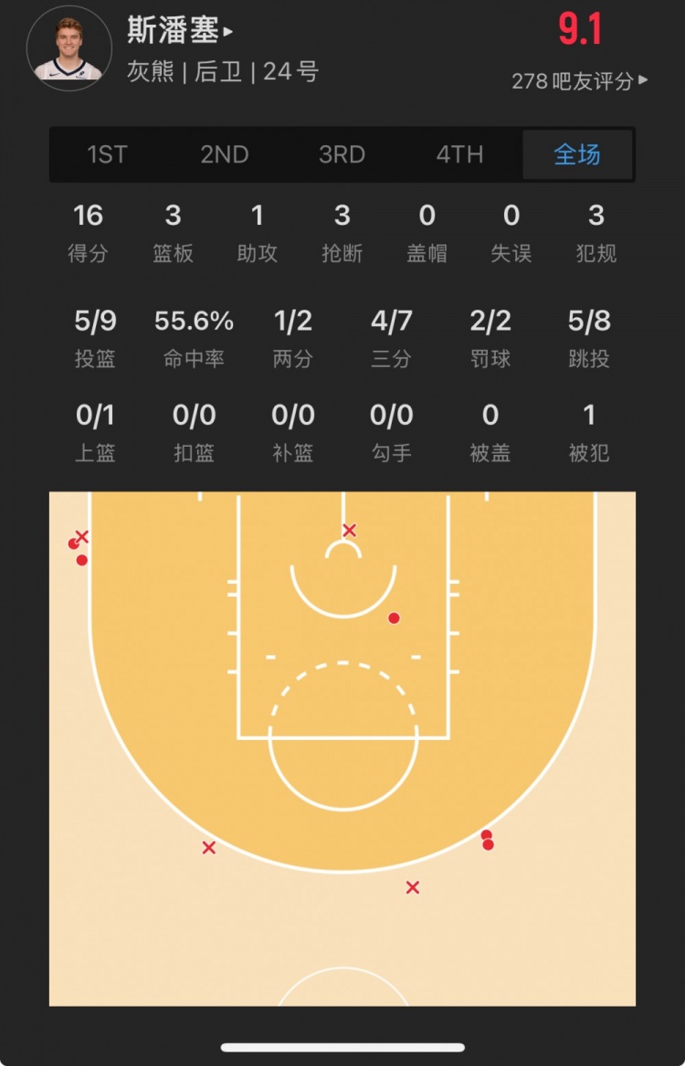 灰熊53號秀 卡梅隆-斯潘塞 登場19.8分鐘