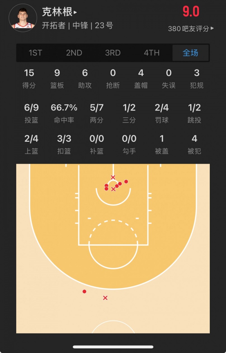 開拓者7號秀 多諾萬-克林根 登場31.9分鐘