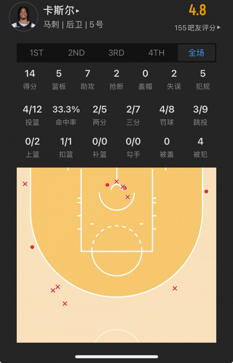 馬刺4號秀 斯蒂芬-卡斯爾 登場29.6分鐘