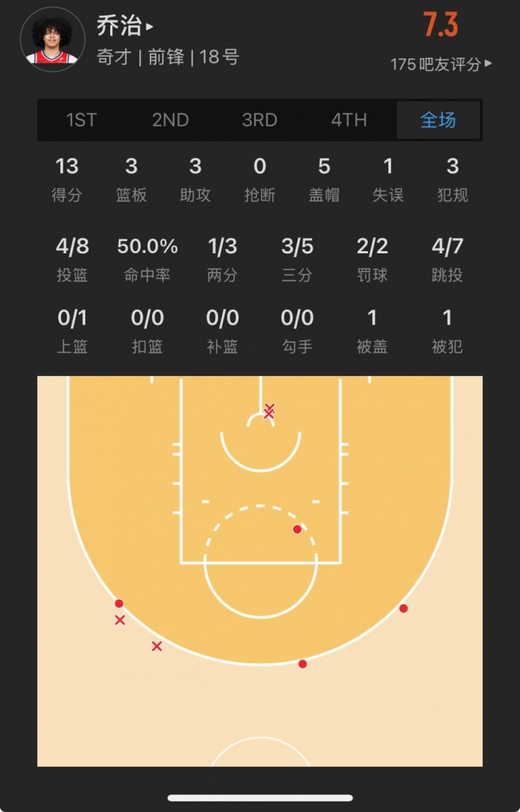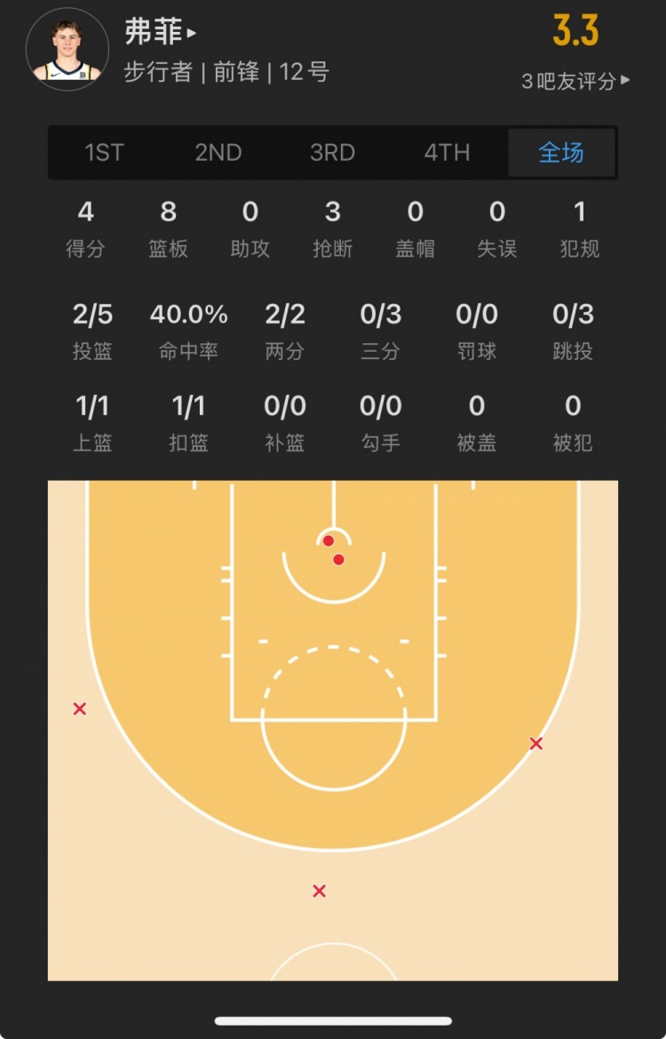 步行者35號秀 約翰尼-弗菲 登場17.9分鐘