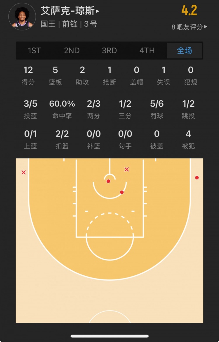 國王落選秀 艾薩克-瓊斯 登場18.9分鐘