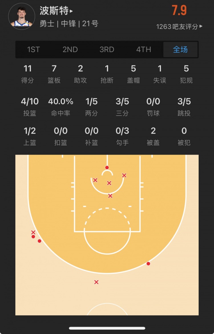 勇士52號秀 昆滕-波斯特 登場25.4分鐘
