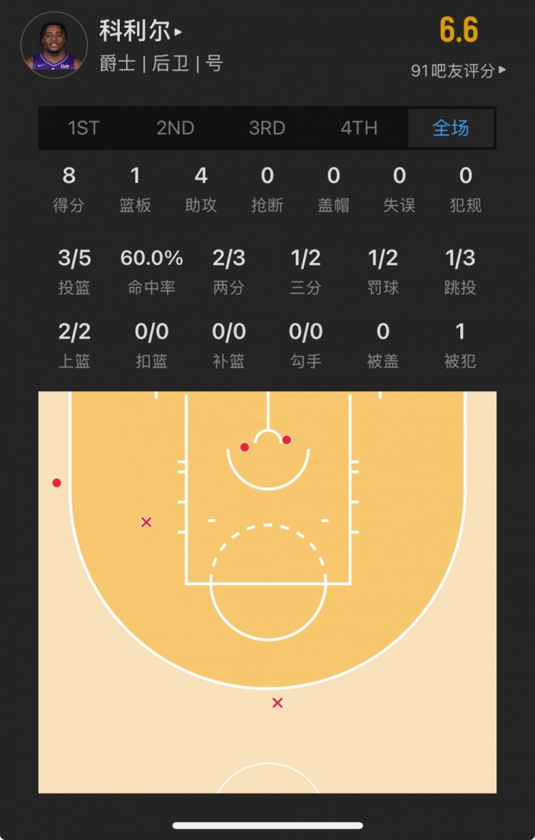 爵士29號秀 以賽亞-科利爾 登場28.4分鐘