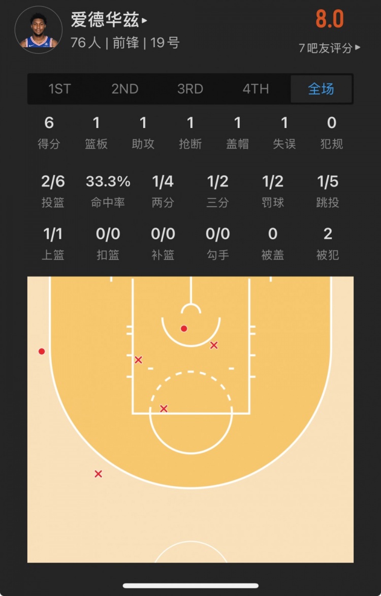 76人落選秀 賈斯汀-愛德華茲 登場20.5分鐘