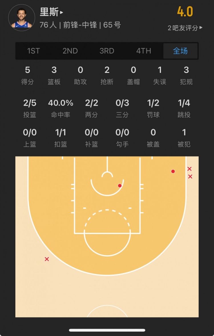 76人落選秀 亞歷克斯-里斯 登場17.7分鐘