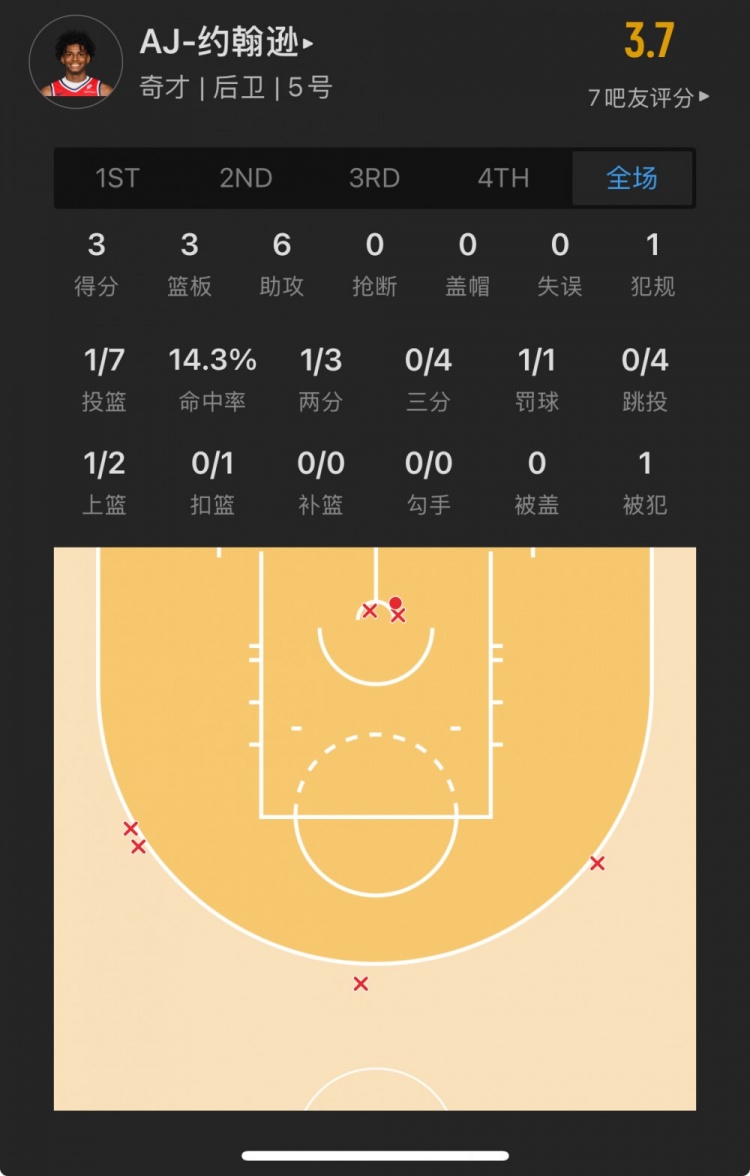 奇才23號秀 AJ-約翰遜 登場23.3分鐘