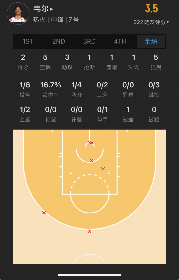 熱火15號秀 克雷爾-韋爾 登場23.0分鐘
