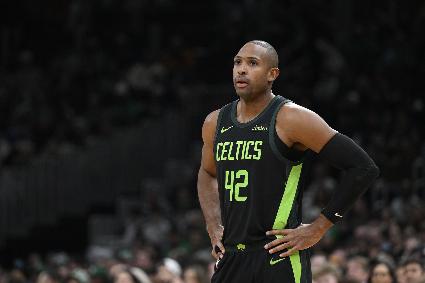 凱爾特人老將霍福德本場比賽表現(xiàn)全面,在三分線外手感不錯多次投進三分。