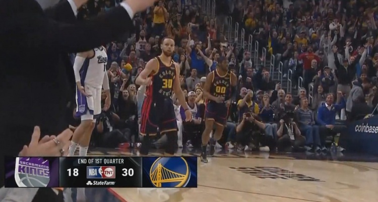 首節(jié)比賽,勇士完全壓制住了對手,單節(jié)命中7記三分球拿到30分,同時將國王的得分限制在18分,單節(jié)就建立起12分的領先優(yōu)勢。