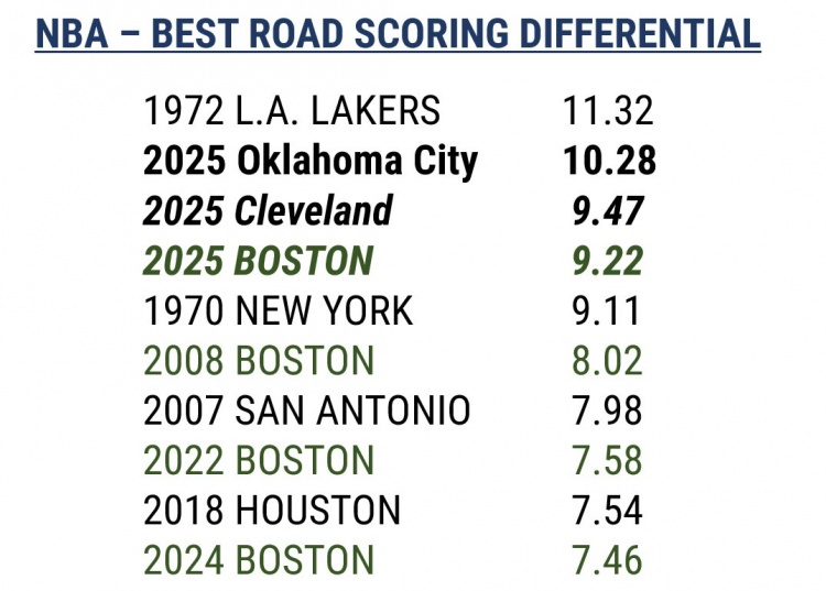 據(jù)統(tǒng)計(jì),NBA歷史單賽季客場比賽場均凈勝分排行榜如下: