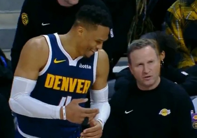很輕松??!威少在場邊和恩師斯科特-布魯克斯聊上幾句