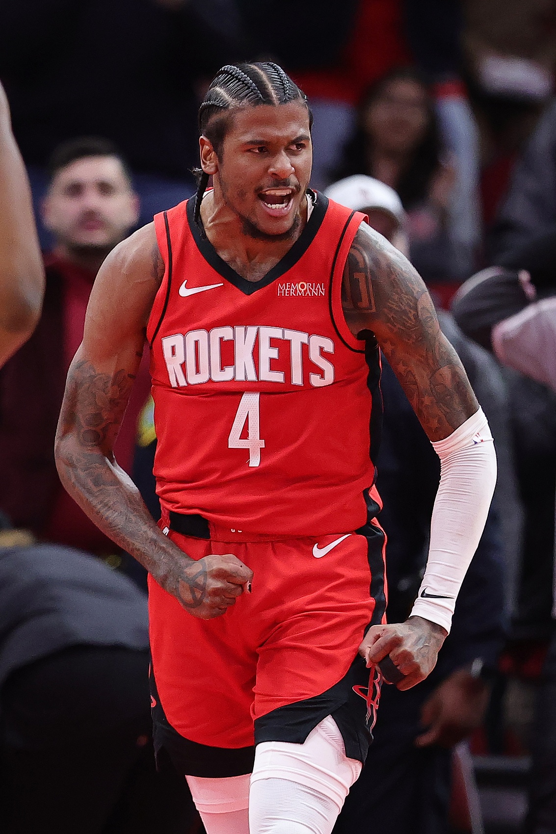 3月15日訊 火箭主場133-96大勝獨行俠,取得5連勝!本場比賽杰倫-格林出戰(zhàn)32分鐘,19投9中,三分8中4,罰球2中1砍下23分9籃板5助攻1搶斷2蓋帽,正負值+27! 標簽: 籃球 NBA 火箭 杰倫-格林