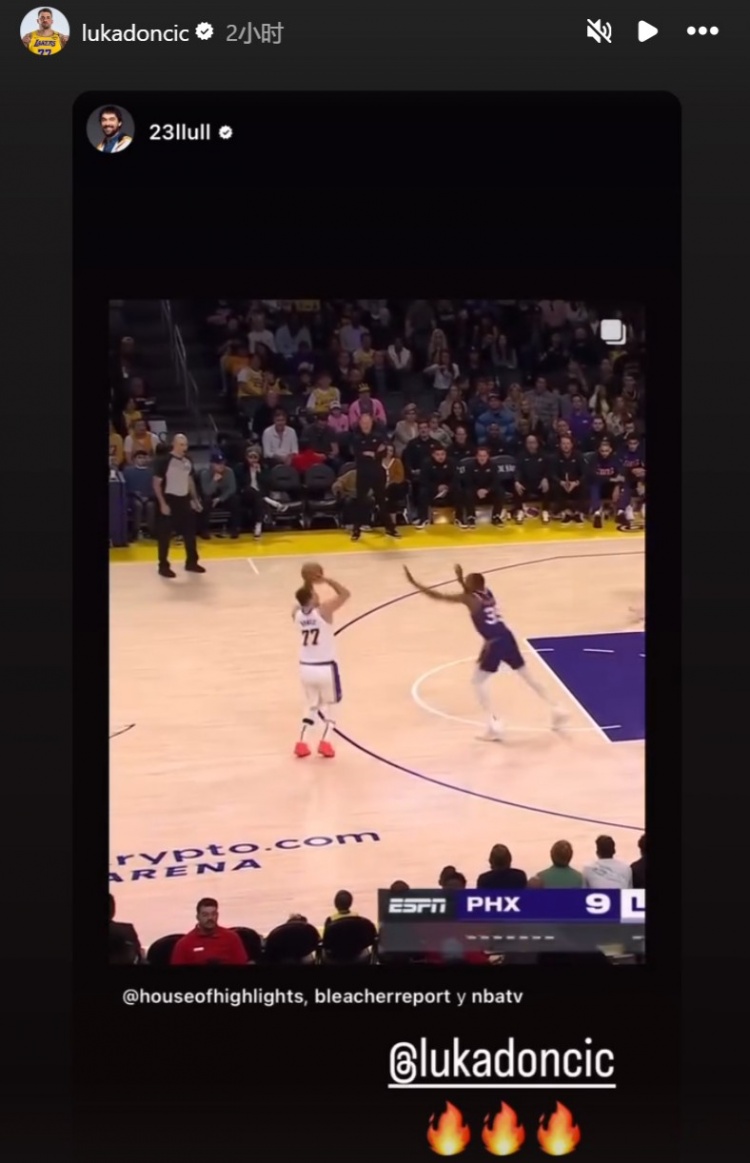 賽后,東契奇本人在INS轉(zhuǎn)發(fā)了這一高難度進(jìn)球。