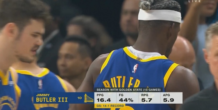 巴特勒場均16.4分5.7板5.9助,命中率44%,勇士期間戰(zhàn)績14勝1負(fù)