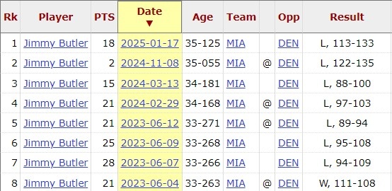 苦主!巴特勒對(duì)掘金8連敗 上次贏球還是23年總決賽G2