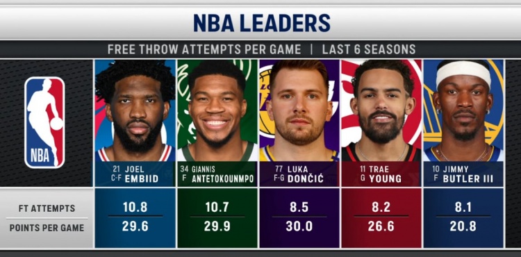 特雷-楊 場均8.2次罰球(場均26.6分)