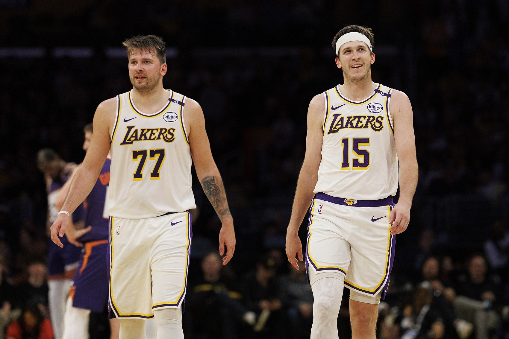 “他們對(duì)奧斯汀-里夫斯也做了同樣的事。所以他們想要持球攻擊的兩個(gè)人是盧卡和奧斯汀-里夫斯。杰倫-布朗說(shuō):‘哦,輪到我了。你上半場(chǎng)表現(xiàn)不錯(cuò),對(duì)吧?現(xiàn)在輪到我了,現(xiàn)在輪到我了?!@就是他們擊敗湖人的方式。那么在季后賽的防守端會(huì)發(fā)生什么呢?”