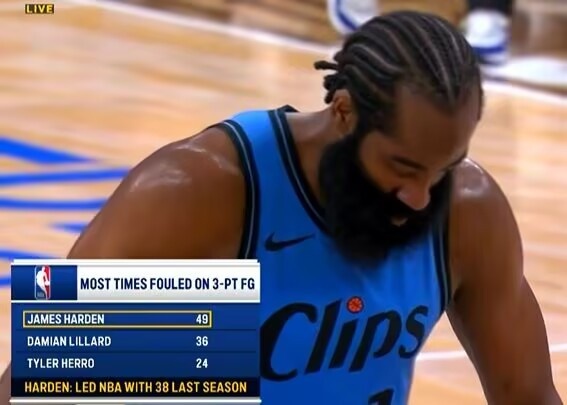 哈登本賽季49次制造三分犯規(guī) 聯(lián)盟最多 上賽季38次同樣最多