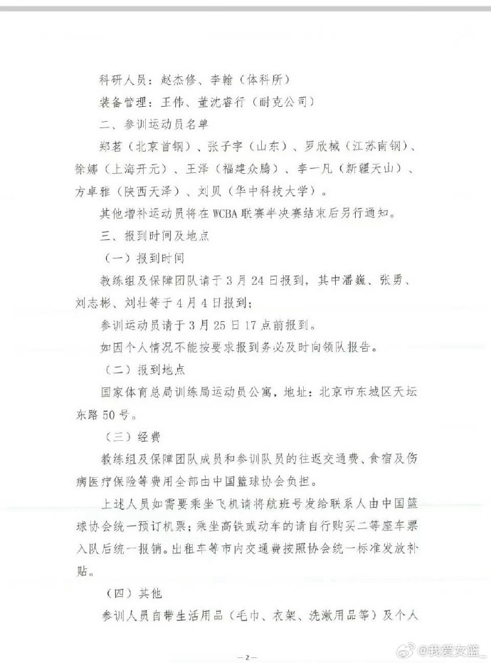 中國女籃發(fā)布短訓(xùn)營通知,備注矚目的張子宇首次入選中國女籃集訓(xùn)名單。除了這8人外,其他增補運動員將在WCBA聯(lián)賽半決賽結(jié)束后另行通知。中國籃協(xié)計劃于3月24日至4月20日舉辦為期四周的國家女籃短訓(xùn)營。