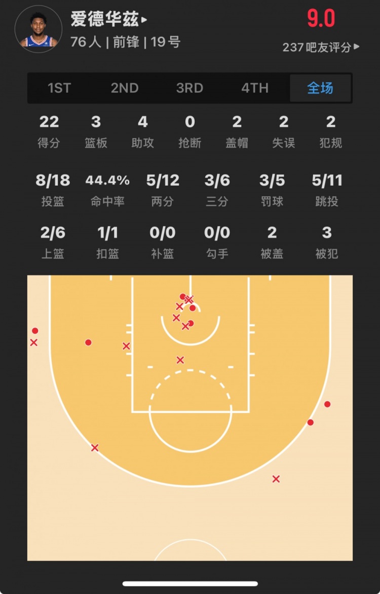 76人落選秀 賈斯汀-愛(ài)德華茲 登場(chǎng)39.2分鐘