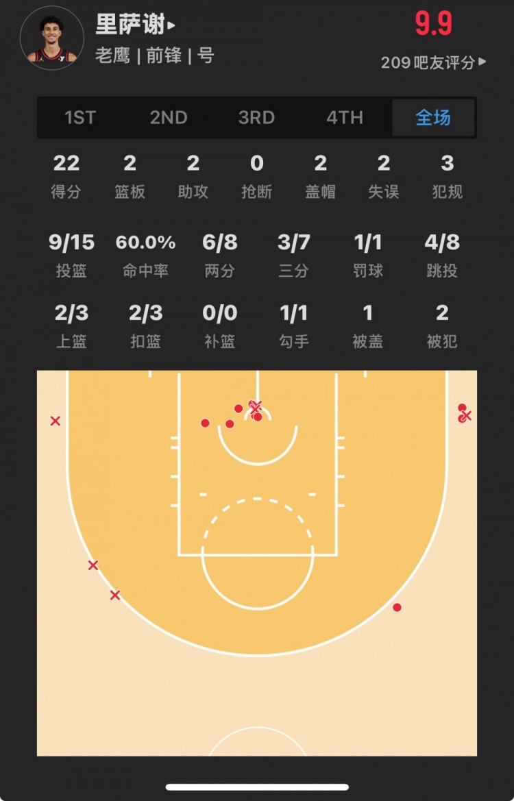 老鷹狀元秀 扎卡里-里薩謝 登場(chǎng)26.9分鐘