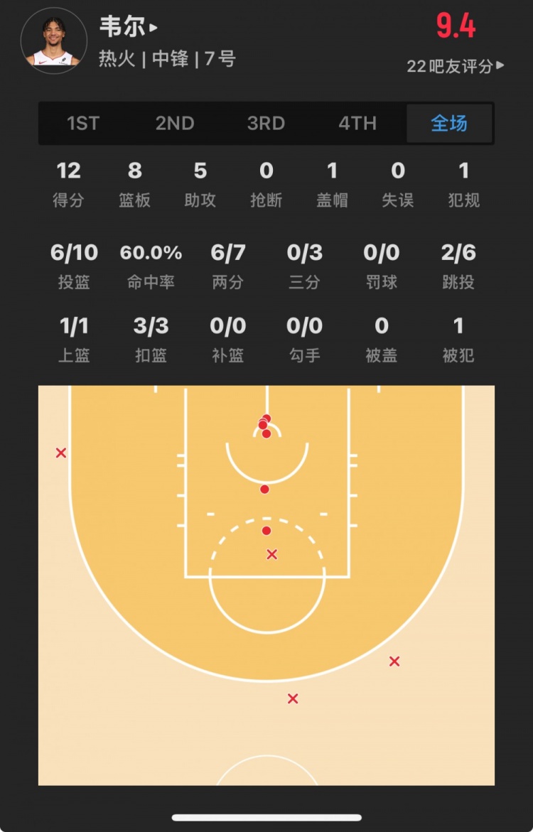 熱火15號(hào)秀 克雷爾-韋爾 登場(chǎng)28.2分鐘