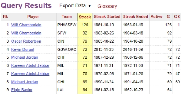 距離NBA名宿邁克爾-喬丹與凱文-杜蘭特連續(xù)72場20+還差8場。