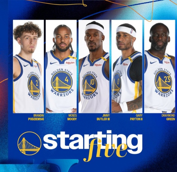 勇士首發(fā):波杰姆斯基、穆迪、小加里-佩頓、巴特勒、追夢(mèng)格林。