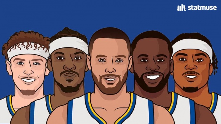 據(jù)統(tǒng)計(jì),勇士當(dāng)派出庫(kù)里、波杰姆斯基、穆迪、巴特勒、追夢(mèng)的首發(fā)陣容時(shí),戰(zhàn)績(jī)11勝0負(fù)。