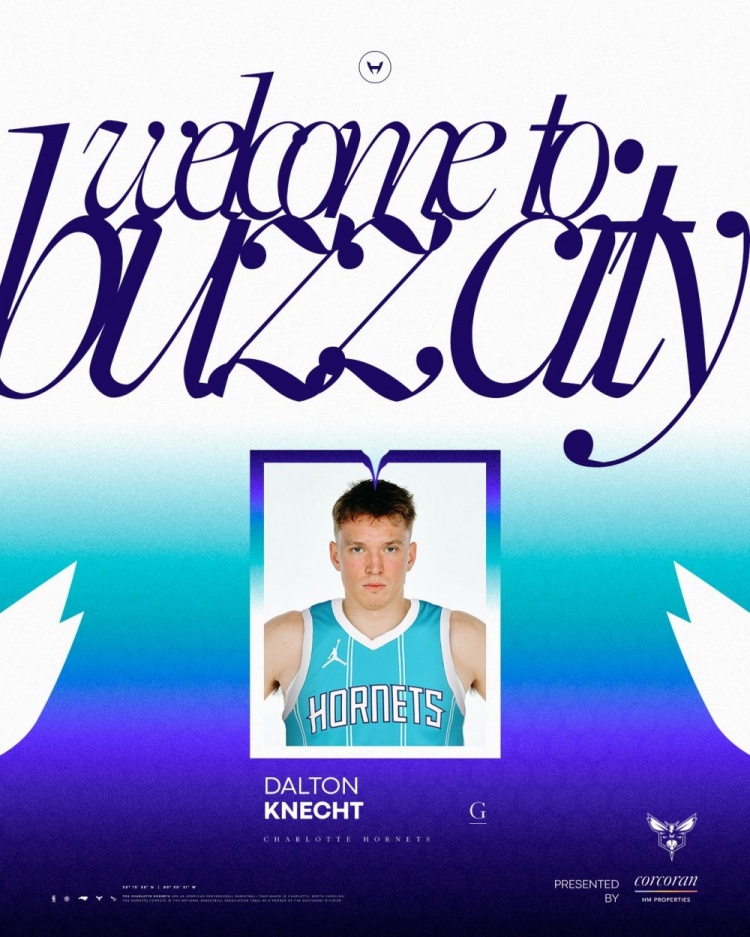 2月7日訊 今日,夏洛特黃蜂官方曬照歡迎道爾頓-克內(nèi)克特,并配文:“夏洛特為你準(zhǔn)備好了”