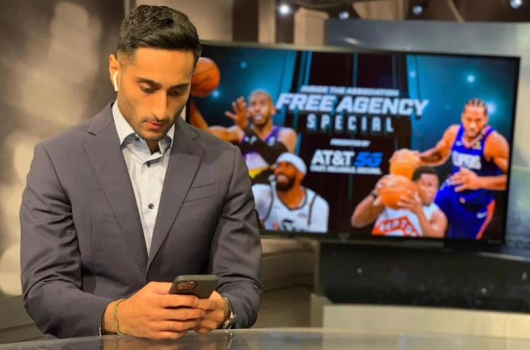 一陣響亮的鈴聲過(guò)后,沙姆斯-查拉尼亞(Shams Charania)第9次放下手中的面包片,為了避免滿手果醬弄臟屏幕,他用小拇指打字,回復(fù)某位NBA總經(jīng)理的消息。