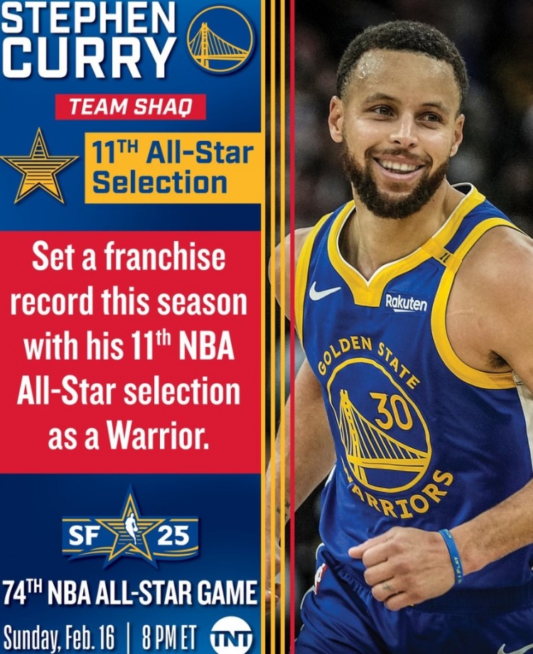 據(jù)統(tǒng)計,這是庫里生涯第11次入選全明星, 超越保羅-阿里金,創(chuàng)勇士隊史新紀(jì)錄。