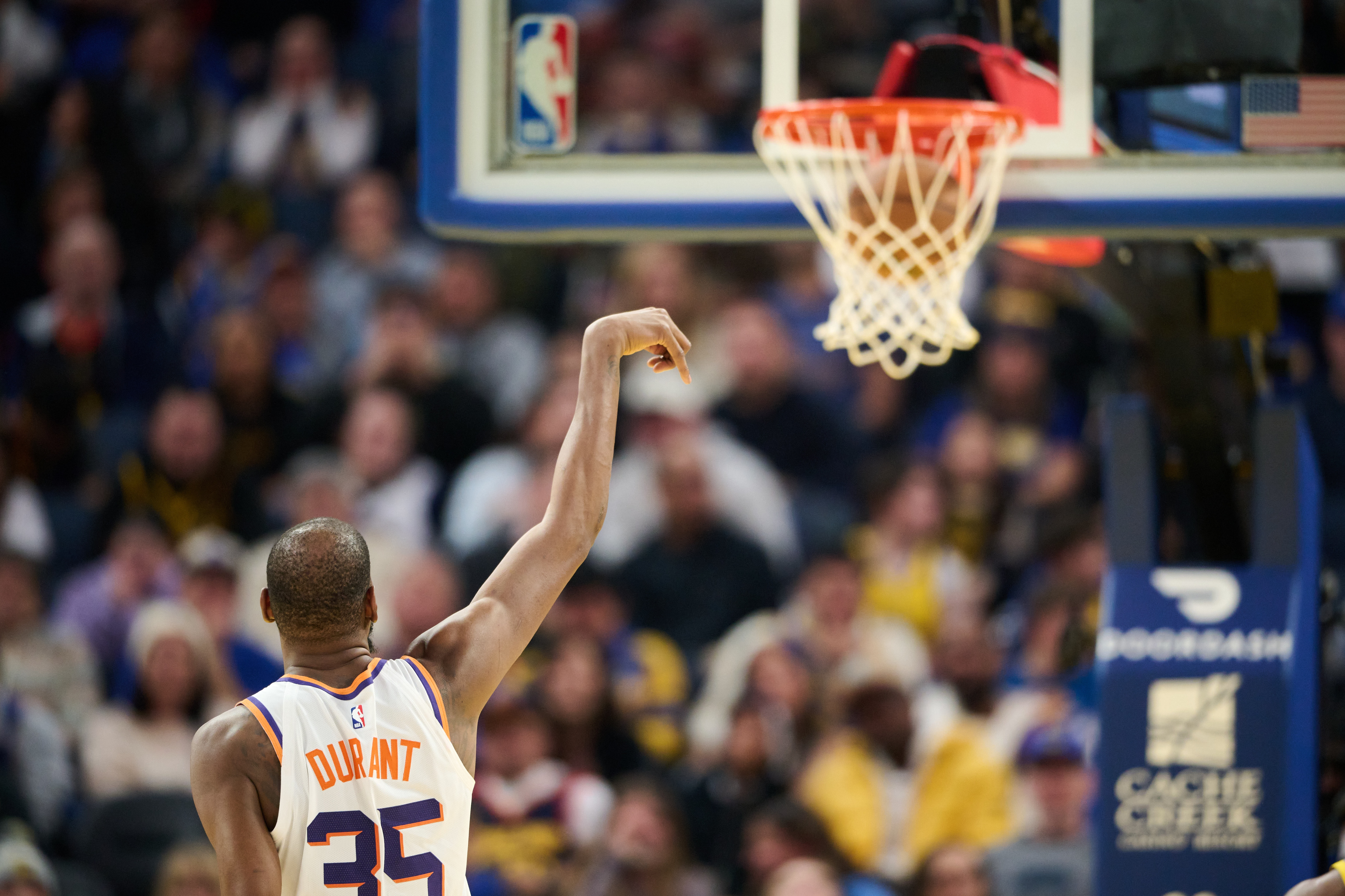 杜蘭特生涯早期“雷神下凡”,運(yùn)動(dòng)能力出色,右腳骨折前連續(xù)七年單季至少扣籃92次,飛天遁地,終結(jié)剛猛;他的投射逐年精進(jìn),菜鳥賽季場(chǎng)均三分球命中率28.8%、10-16英尺命中率34.1%、16英尺開外長(zhǎng)兩分命中率41.5%,時(shí)至今日,他在10-16英尺單季場(chǎng)均命中率達(dá)到過59.1%、16英尺外長(zhǎng)兩分命中率達(dá)到過57.5%、三分球命中率最高時(shí)45%,可謂是全區(qū)域無死角的一代投射宗師!